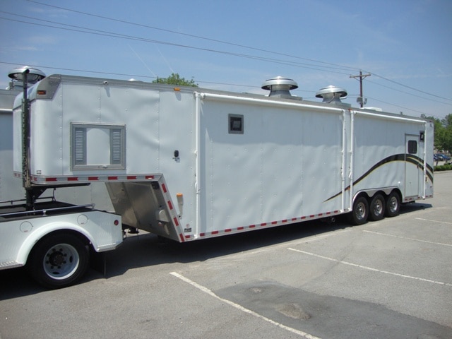 38ft 6 burner stove with two ovens with 2 by 2 griddle 35# deep fat fryers (2) 3 door refrigerator 2 door freezer Convection Oven (1) Stock pot burner 80 gallon water tank 10 gallon hot water heater Hand washing sinks (2) 3 compartment sink 50 gallon propane tanks (2) Grey water tanks (1) ****Generator Included * Excellent condition * All units 2007 and newer * Diamond Plated flooring * Low entrants; less than 36 inches off the ground * 33% more usable space than most mobile kitchens (space calculated on actual usage area instead of bumper to bumper) * Dishwashers utilize high pressure commercial cleaning system (available in most mobile kitchens) * All units installed with Ansul suppression system * Units detailed and cleaned with a high pressure washing system